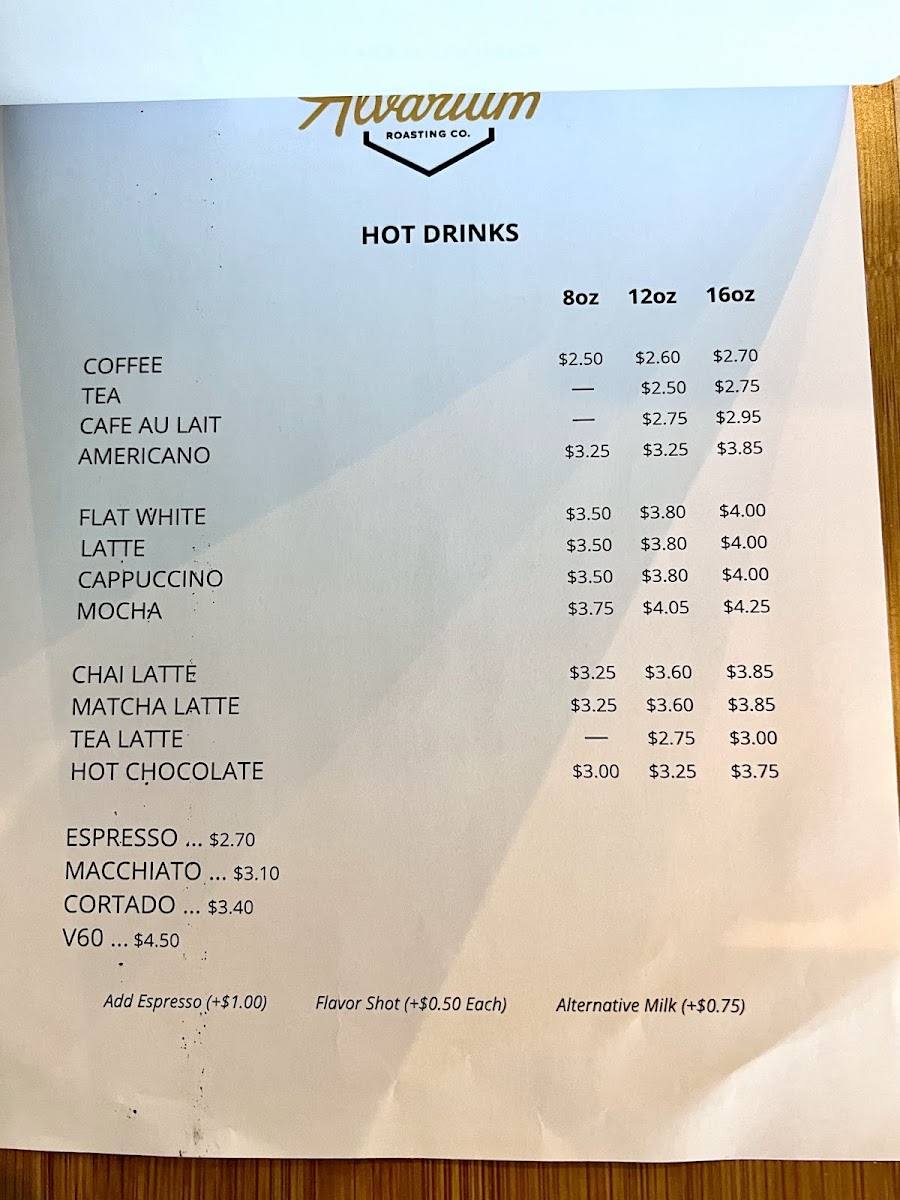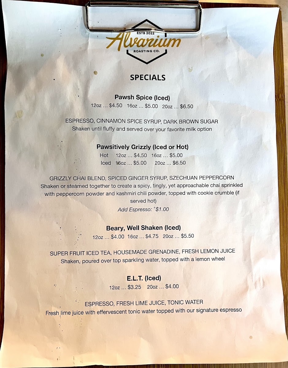 Alvarium Roasting Company Menu